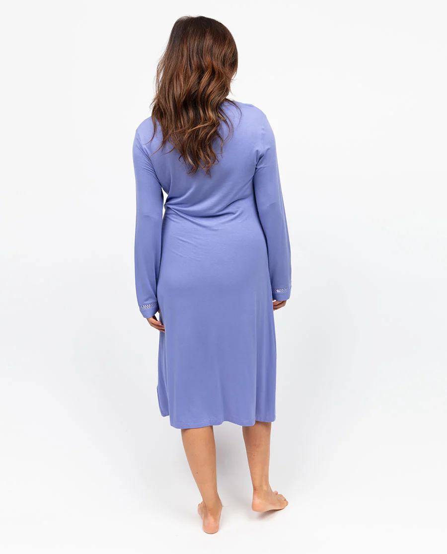 Like slipping between fresh sheets -light, soft, and made for pure relaxation - the Angelina Lilac Insert Lace-Detail Jersey Long Sleeve Short Nightdress is the kind of nightwear that makes every moment of unwinding feel effortless. Crafted from a beautifully soft modal-elastane blend, this fully lilac nightdress feels silky against the skin and moves with you, offering that barely-there comfort you crave after a long day. Designed with a V-neckline, rounded back, and delicate lace-trimmed long sleeves, itβs a piece that brings just the right style of ease to your evening routine. The self-folded hem ensures a relaxed fit and creates a silhouette that feels as effortless as your best nights in. For cosy nights curled under a blanket, slow wake-ups where the world can wait, and every soft moment in between, this nightdress makes sure your downtime feels just as luxurious as it should.