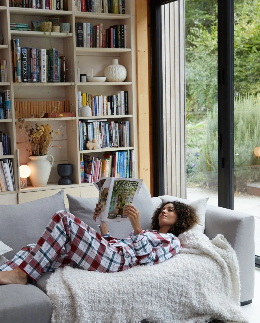 Christmas pyjamas you could wear year round. Our Blaze Brushed Check Long Sleeve Pyjama Set leans just enough into the festive season, whilst staying smart enough to wear well beyond it sheds its final layers. Made from 100% cotton, brushed for the kind of softness that’s hard to match, this pyjama set is sure to become a festive favourite. The red, green and white check print has that classic, cosy feel that begs to be worn on a full sofa. The top has a revere collar, cuffed sleeves, red modal piping and matching functional buttons, structured enough to look sharp, soft enough to fall asleep in. The bottoms follow suit with a clean flat front, elasticated back waist, adjustable drawstring and two side pockets. Whether you’re stepping into Christmas morning or settling in for a long winter evening, this set’s got you covered. Plus with matching pieces available in men’s and children’s sizes, you’ll be sorted for family photos throughout the whole festive season. Both pieces are available for individual purchase, meaning you can mix and match with other favourites, or whatever you unwrap on Christmas morning.
