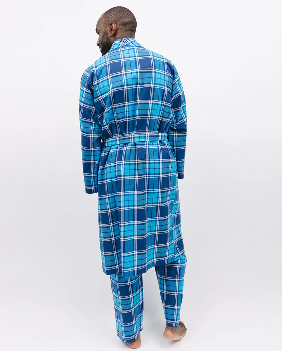 Brushed Blue Check Long Dressing Gown