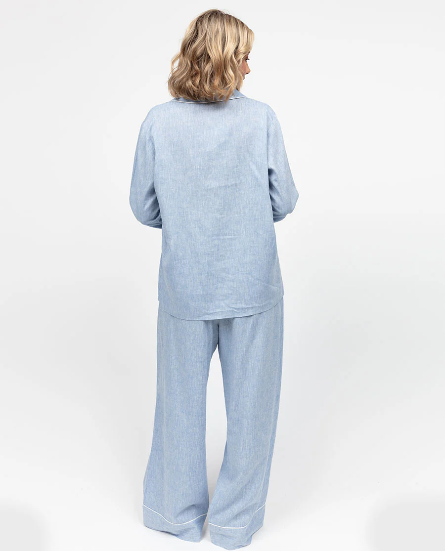 The Linen Edit Womens Blue Wide Leg Pyjama Set
